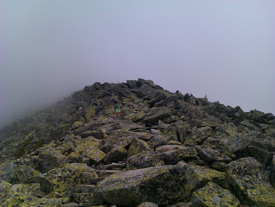 Do tohto okamihu som si myslela, že sa výšok nebojím. Asi som len bola vždy v tej výške v bezpečnej situácii. Tu som sa však musela škriabať a dávať pozor sama za seba a tak som zistila, že mám predsa len nejaký ten strach z výšav. Navyše zrazu bola za mnou kopa ľudí , ktorí čakali, kedy sa už pohnem a uvoľním im cestu. To moju nervozitu ešte viac umocnilo. Po asi polhodinke a miernom zaváhaní na skalách som však bola tam, na vrchole Kriváňa – symbole Slovenska. Pocit to bol úžasný, tešila som sa z toho, že som prvý krát v živote vo výške až 2 495 m n. m. a to vlastnými silami. Jediným nedostatkom bolo počasie. Oblaky, ktoré nás začali sprevádzať už od kosodreviny sa nás držali až na vrchol a tým nám znemožnili uvidieť krajinu pod nami z veľkej výšky Na druhej strane to však bolo aj dobre, pretože ak by bolo jasno a videla by som tu hĺbku po do mnou, ktovie, či by som sa so svojim strachom odvážila vyjsť až tam hore. Ten výhľad by však určite za to stál.