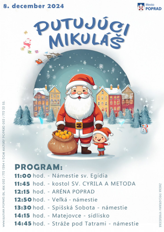 Srdečne pozývame deti a ich rodičov z prímestských častí mesta Poprad na návštevu Putujúceho Mikuláša, ktorého budú sprevádzať Anjel a Čert.