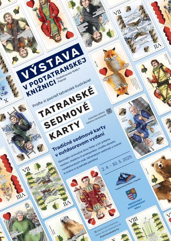 Srdečne Vás pozývame na jedinečnú autorskú výstavu tatranských ilustrácií s názvom Tatranské sedmové karty od Kataríny Cermanovej. Každá karta má svoju originálnu ilustráciu z prostredia Vysokých Tatier. Spoznajte výnimočné tatranské ženy, horských nosičov, chatárov, priekopníkov Tatier a ich príbehy.