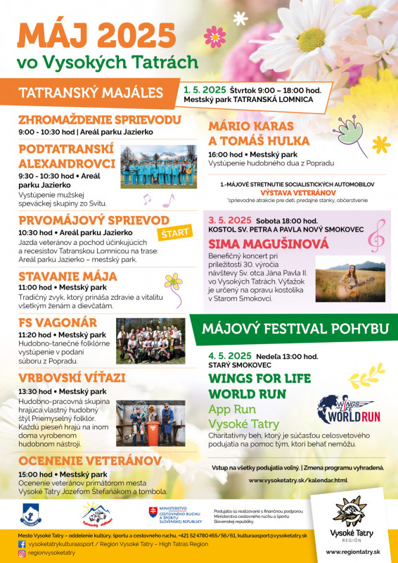 11:00 Stavanie mája v mestskom parku v tatranskej Lomnici – tradičný zvyk, ktorý má priniesť zdravie a vitalitu pre všetky ženy a dievčatá.