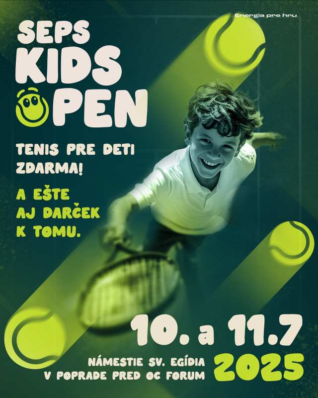 Poprad, 2. júl 2025 – V dňoch 10. a 11. júla 2025 sa Námestie sv. Egídia v Poprade, pred OC Forum, premení na športovo-zábavnú zónu pre deti. SEPS KIDS OPEN – Energia pre hru, sprievodné podujatie k medzinárodnému turnaju SEPS Poprad Tatry Open 2025, ponúkne najmladším zábavu, pohyb a prvý kontakt s tenisom.