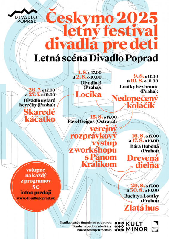 Detský divadelný festival Českymo – Verejný rozprávkový výstup z workshopu s Pánom Králikom v podaní Pavla Gejguša z Ostravy 15.8. o 17:00 na Letnej scéne Divadla Poprad.