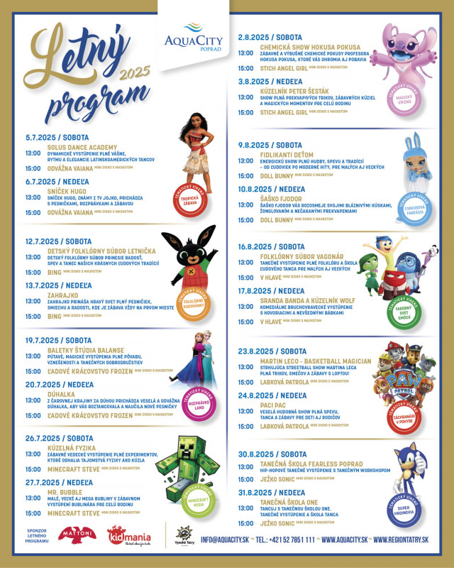 13:00 FIDLIKANTI DEŤOM – Energickú show plnú hudby, spevu a tradícií – od ľudoviek po moderné hity, pre malých aj veľkých.