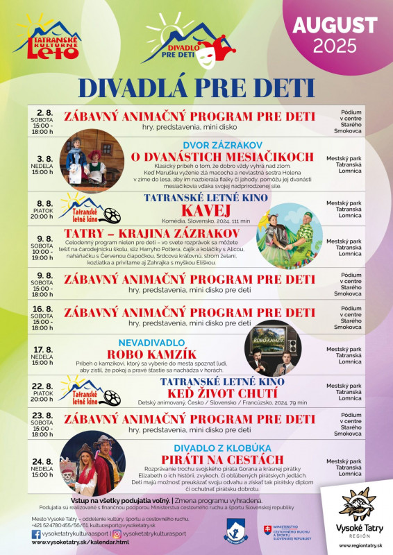 Celodenný program nielen pre deti – vo svete rozprávok sa môžete tešiť na čarodejnícku školu, sliz Harryho Pottera, čajík a koláčiky s Alicou, naháňačku s Červenou čiapočkou, Srdcovú kráľovnú, strom želaní, kozliatka a privítame aj Zahrajka s myškou Eliškou.
