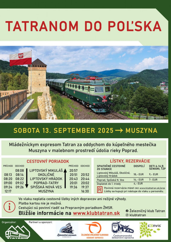 Srdečne Vás pozývame na našu poslednú a zároveň najdlhšiu tohtoročnú verejnú jazdu súpravou retro Tatranu do poľskej Muszyny, ktorá sa uskutoční v sobotu 13.9.2025.
