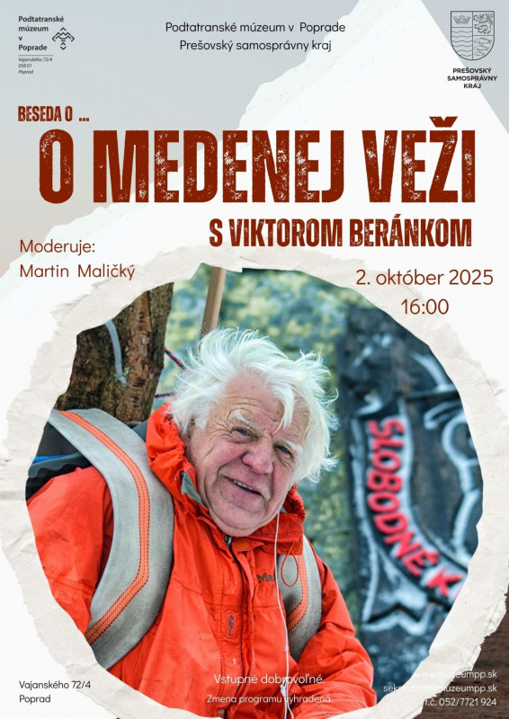 Beseda sa uskutoční v prednáškových priestoroch Podtatranského múzea v Poprade, Vajanského 72/4, vo štvrtok 2. októbra 2025 od 16:00 hod.