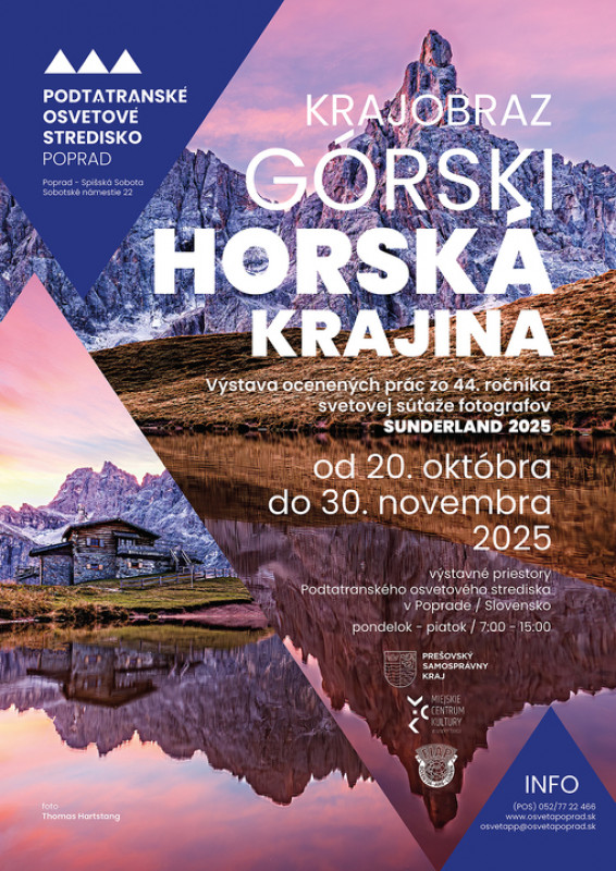 20. októbra 2025 – 30. novembra 2025 od 07.00 -17.00 hod. VÝSTAVA OCENENÝCH FOTOGRAFICKÝCH PRÁC Z MEDZINÁRODNEJ SÚŤAŽE.