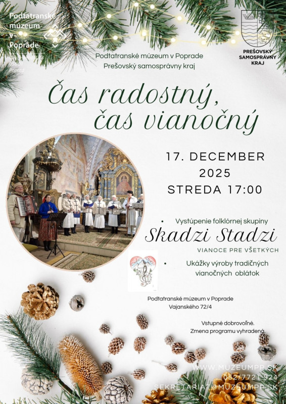 Vianočné popoludnie sa uskutoční v priestoroch Podtatranského múzea v Poprade, Vajanského 72/4 Poprad.