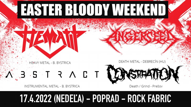 Metalové podujatie Easter Bloody Weekend sa uskutoční v nedeľu, 17.4.2022, v Rock Fabric v Poprade.