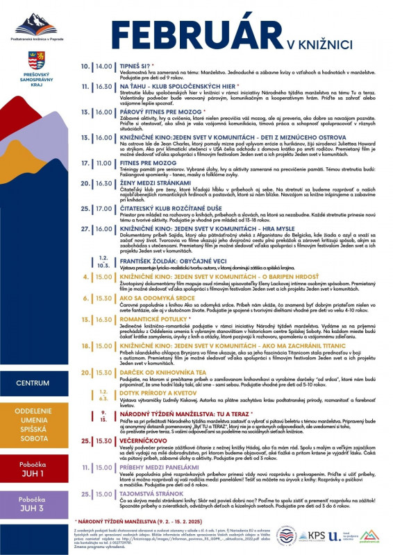 Srdečne pozývame na aktivity pre deti a dospelých do priestorov Podtatranskej knižnice v Poprade na sídlisku Západ a na jej pobočky Oddelenie umenia Spišská Sobota, JUH 1, JUH 3.