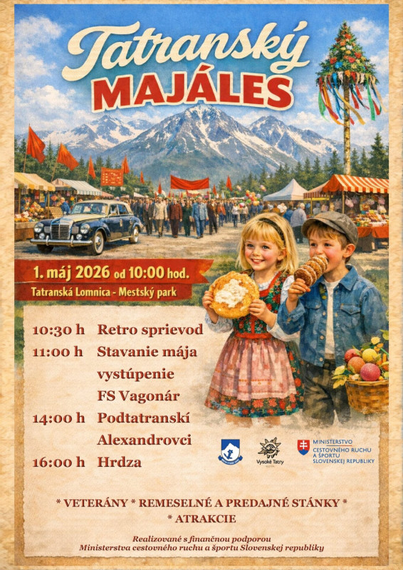 11:00 Stavanie mája v mestskom parku v Tatranskej Lomnici – tradičný zvyk, ktorý má priniesť zdravie a vitalitu pre všetky ženy a dievčatá, vystúpenie hudobno-tanečného folklórneho súboru Vagonár