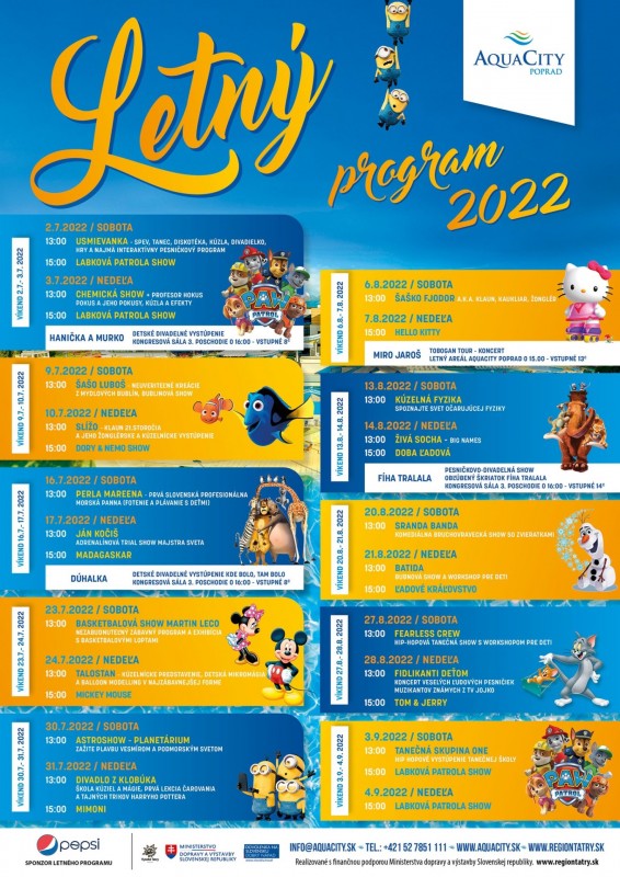 Letný program v AquaCity Poprad plný zábavy počas víkendov cez celé leto od 2.7.2022 – 4.9.2022.