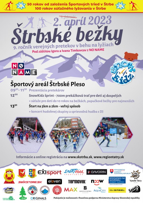 Organizátori zo Športového klubu Štrba chcú svoje skúsenosti z organizácie medzinárodných pretekov a vrcholných pretekov slovenského bežeckého lyžovania využiť na to, aby pripravili kvalitnú a bezpečnú trať a zábavnou formou priblížili bežecké lyžovanie fanúšikom všetkých vekových kategórií. V sobotu 4. februára 2023 sa na Štrbskom Plese uskutoční 9. ročník verejných pretekov v behu na lyžiach Štrbské bežky. Podujatie je pod záštitou hudobnej skupiny No Name. Preteky sú súčasťou kalendára FIS SnowKidz, ktoré združuje podujatia po celom svete s cieľom postaviť deti na lyže. Preteky sú vhodné pre rekreačných bežcov, rodiny s deťmi, skúsených lyžiarov aj fanúšikov, ktorí spomínaných prídu povzbudiť s spoločne sa zabaviť na kultúrnom sprievodnom programe.
