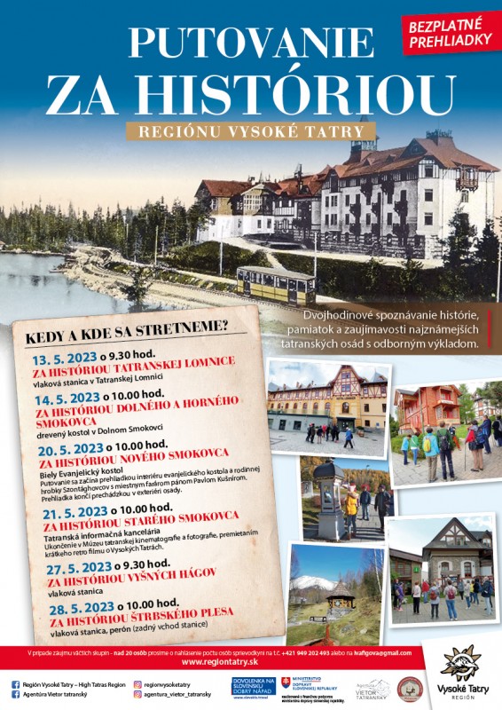 Spoznajte históriu, pamiatky a zaujímavosti najznámejších tatranských osád počas kultúrno – turistickej prechádzky v mesiaci MÁJ s profesionálnou turistickou sprievodkyňou, ktorá trvá približne 2 hodiny. VSTUP NA PUTOVANIE JE VOĽNÝ.