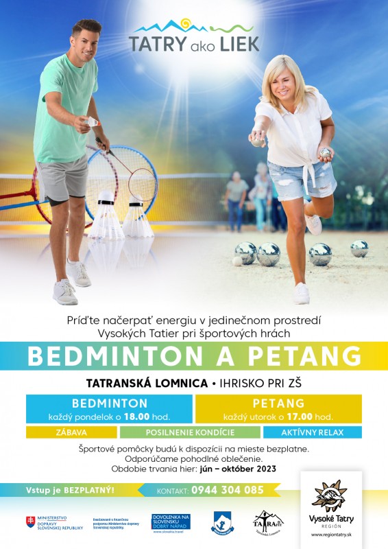 Príďte načerpať energiu v jedinečnom prostredí Vysokých Tatier pri Športových hrách – bedminton a petang na ihrisku pri ZŠ v Tatranskej Lomnici.