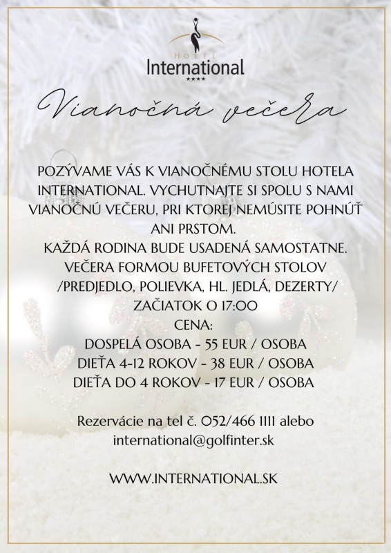 Lahodná Vianočná večera v Hoteli International, pri ktorej nemusíte pohnúť ani prstom.