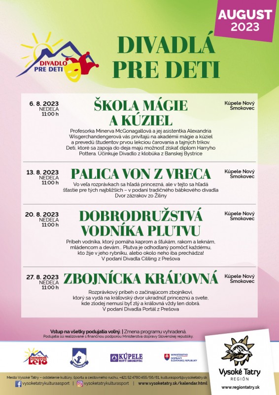 Príbeh vodníka, ktorý pomáha kaprom a šťukám, rakom a leknám, mládencom a devám… Plutva je odhodlaný pomôcť každému, kto žije v jeho rybníku, alebo okolo neho iba prechádza – v podaní Divadla Cililing z Prešova. Predstavenie sa uskutoční v rámci Tatranského kultúrneho leta v areáli kúpeľov Nový Smokovec 20.08.2023 o 11:00.