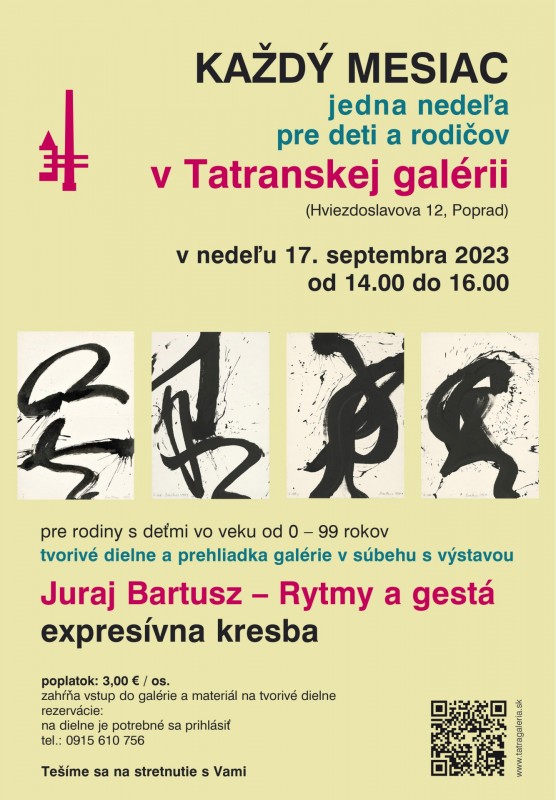 Poplatok: 3,00 € / os. zahŕňa vstup do galérie a materiál na tvorivé dielne.