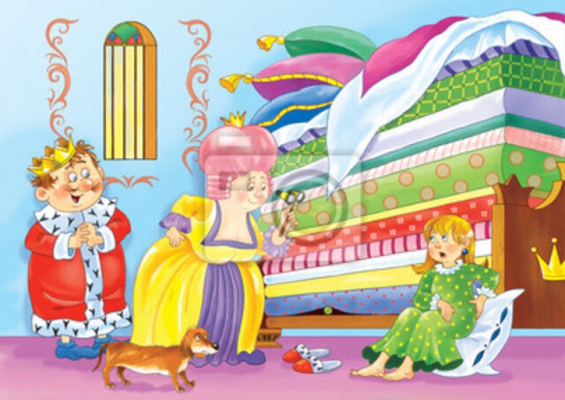 Bol raz jeden princ, ktorý sa chcel oženiť s princeznou, ale chcel, aby to bola naozajstná princezná. A tak precestoval celý svet, aby takú princeznú našiel, no všade mu vstúpila do cesty nejaká prekážka. Princezien bolo síce dosť, nikdy však nevedel s istotou zistiť, či sú to pravé princezné: vždy sa našlo niečo, čo nebolo v poriadku. Vrátil sa teda domov veľmi smutný. Raz večer bola strašná búrka. Pred bránou stála princezná, až hrôza, ako v tom daždi a búrke vyzerala! Navzdory svojmu výzoru o sebe tvrdila, že je naozajstná princezná. “Dobre, presvedčíme sa o tom,” pomyslela si kráľovná. Odišla do spálne a položila na samučičké dno postele hrášok, vzala dvadsať hrubých matracov, položila ich na hrášok a na matrace nastlala ešte dvadsať perín z jemného páperia. To bola posteľ ako stvorená pre princeznú, ale …